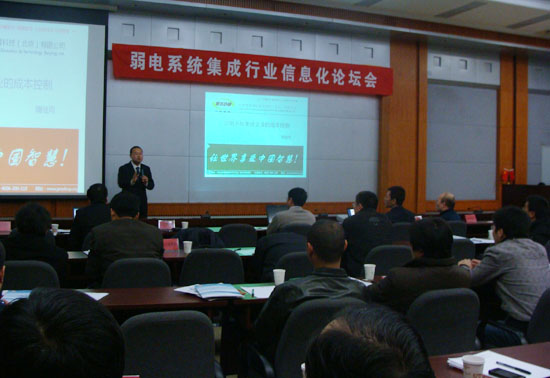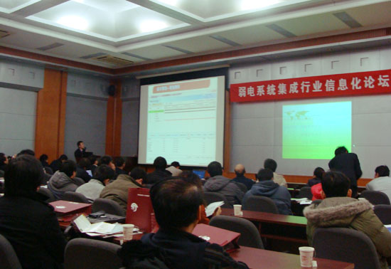 2010年12月23日,由北京邦永科技有限公司,中國安防行業(yè)協(xié)會、中國智能建筑信息網(wǎng)、中智慧聚國際教育科技公司共同舉辦的弱電系統(tǒng)集成行業(yè)信息化論壇在北京圓滿閉幕。本次論壇以“弱電集成企業(yè)如何通過信息化進行內(nèi)部管控”為主題,弱電系統(tǒng)集成行業(yè)領導、知名專家、企業(yè)代表、信息化主管和行業(yè)媒體共80多人參加此次論壇,共同探討弱電、系統(tǒng)集成行業(yè)信息化現(xiàn)狀,以及如何利用信息化手段促進弱電、系統(tǒng)集成企業(yè)健康快速的發(fā)展。