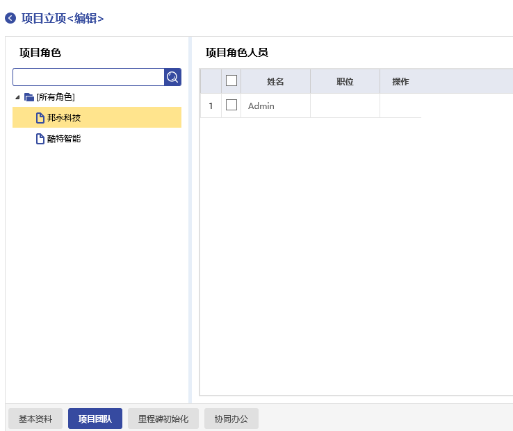 ? 包含項目的創(chuàng)建及審批,創(chuàng)建項目時除填寫相關信息外,還可以上傳相關文檔、定義項目團隊、創(chuàng)建里程碑計劃。