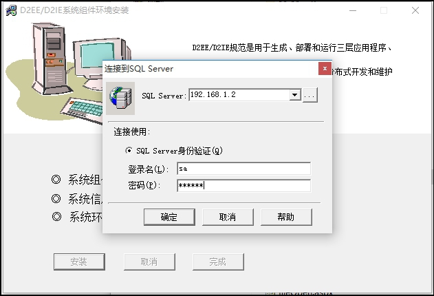 2、填入SQLserver所在的服务Q登录名和密码,点击定。如?7