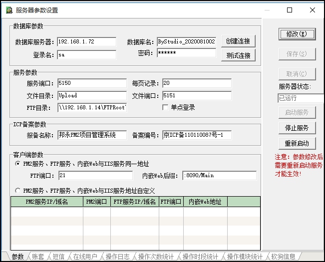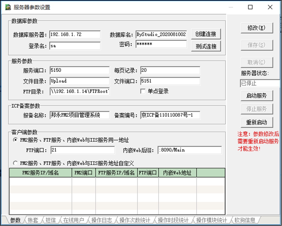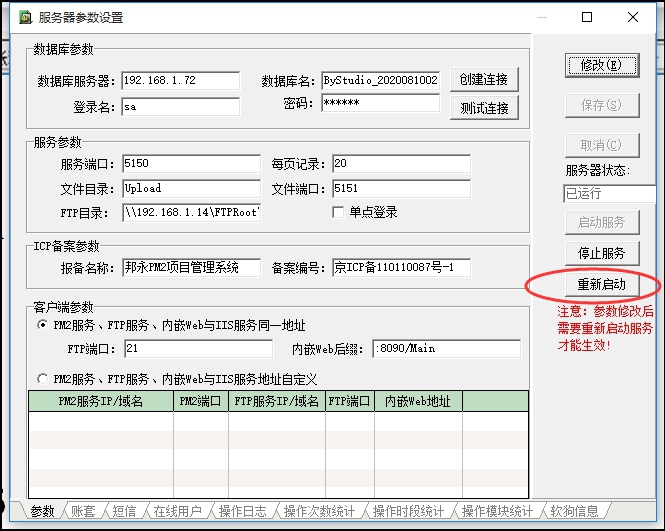 6、进入服务参数设|,点击修改Q将端口修改为刚刚测试通过的端口,然后点击保存Q如?2