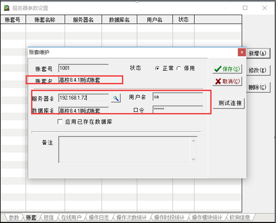 2、点L增创̎套。设|帐套名Uͼ服务器名Q数据库名,用户名和口oQ点M?如图25、图26