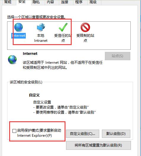 瑙e喅鏂規(guī)硶錛氭墦寮IE閫夐」錛屽湪鍙栨秷IE淇濇姢妯″紡錛岃鐪嬩笅鍥俱?/p>