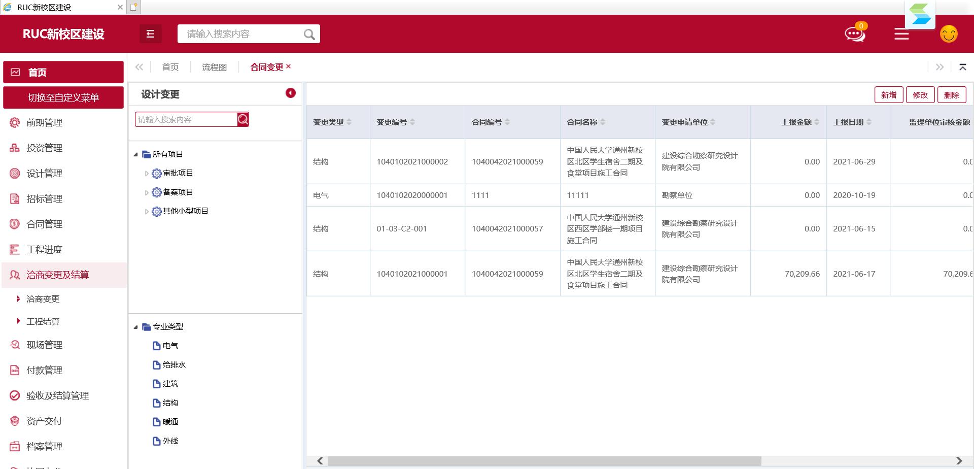 在通州新校区徏讄理过E中Q变更管理是目理中的最重要q程之一Q其主要d是分析变更的可行性及(qing)对工E投资的影响。项目变更管理应臛_包含以下内容Q变更内宏V变更造h(hun)分析、变更可行性分析、变更审批表、变更会(x)议纪要等。工E洽商、现场签证管理至应包含以下内容Q项目名U、合同名U、洽商及(qing){证单位、内宏V日期、金额、有兌料扫描g{,工程z商、签证相兌用通过资金支付理模块l一处理?/p>