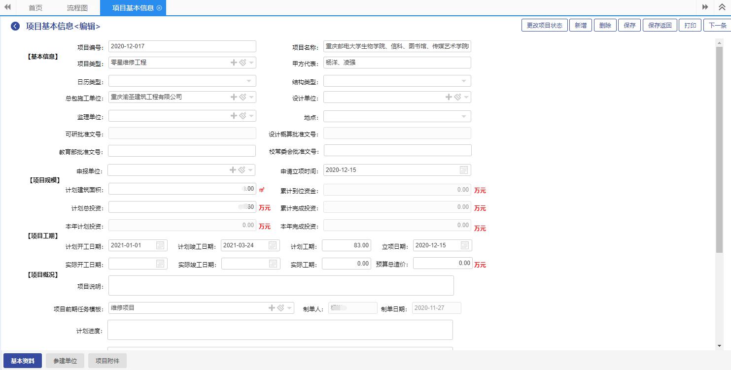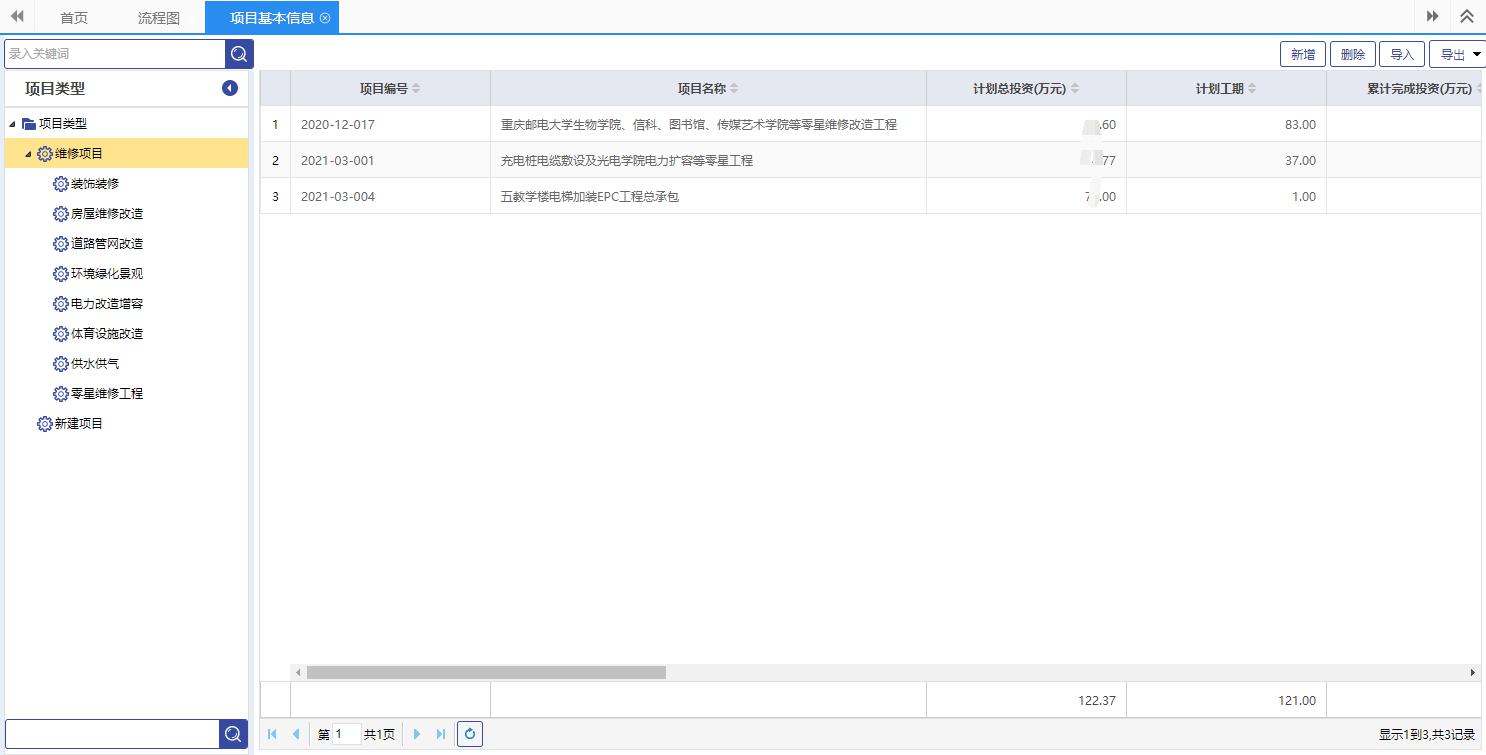 Ҏ(gu)重邮基徏处的M规划Q在pȝ中主要管理二c项目:(x)新徏目、维修项目?/p>