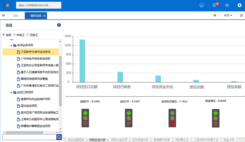 項(xiàng)目總攬報(bào)告涵蓋項(xiàng)目預(yù)算執(zhí)行情況、工程進(jìn)度情況、資金流動(dòng)狀況、合同執(zhí)行情況、物資設(shè)備采購(gòu)執(zhí)行分析等多個(gè)業(yè)務(wù)角度,通過(guò)與項(xiàng)目計(jì)劃的對(duì)比,發(fā)現(xiàn)項(xiàng)目偏差,為項(xiàng)目的跟蹤、評(píng)估、決策奠定基礎(chǔ)。