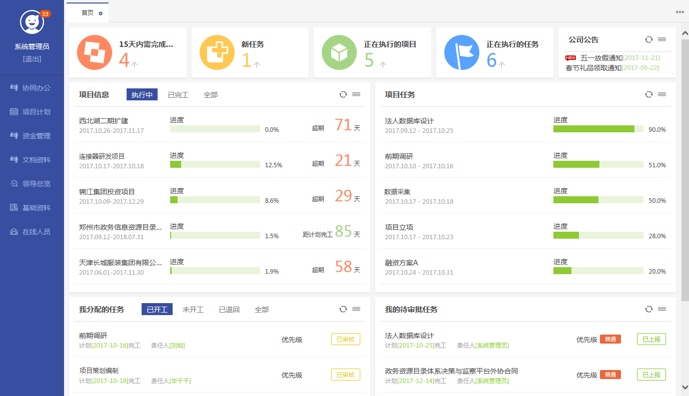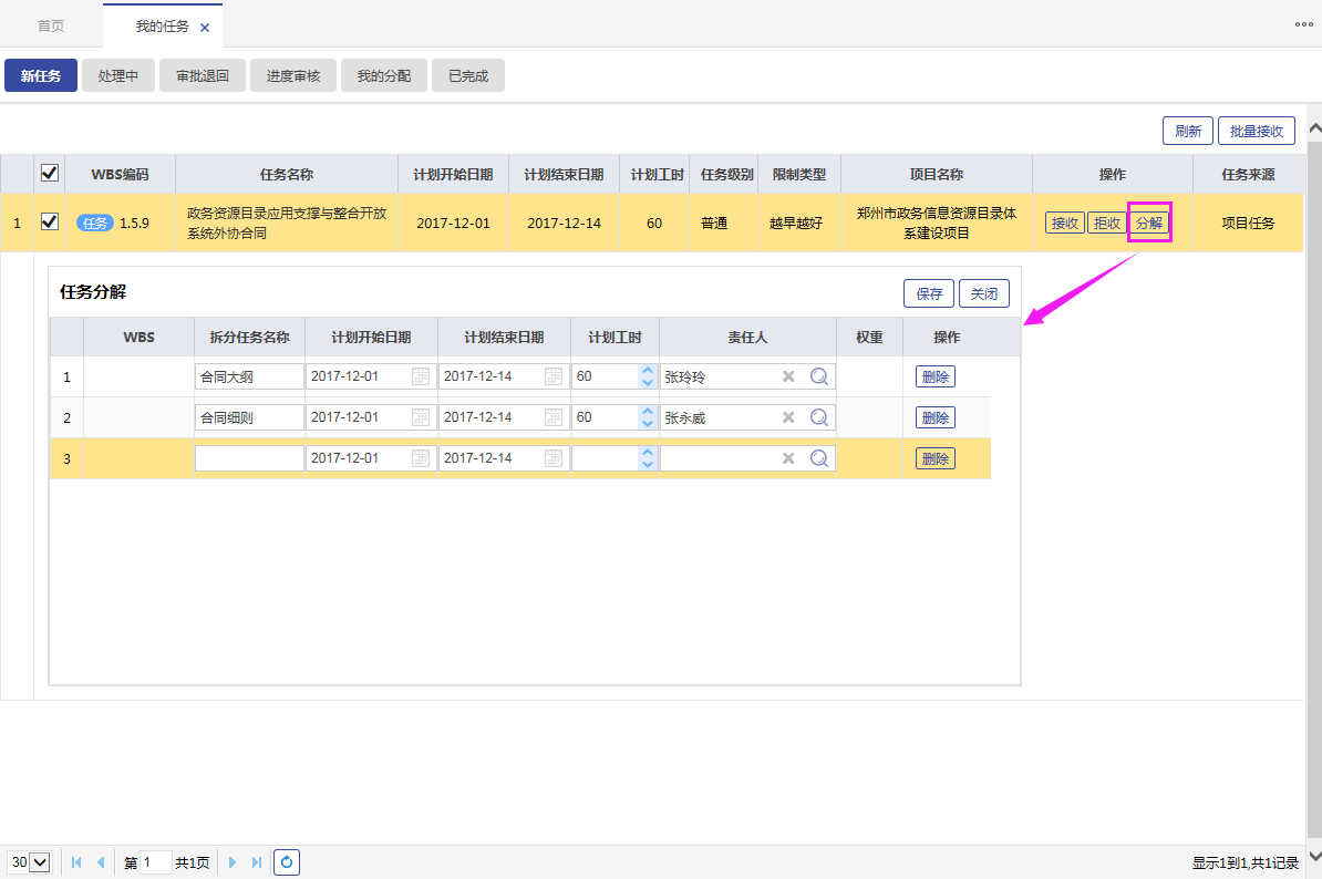 項(xiàng)目任務(wù)可分別設(shè)置責(zé)任人,責(zé)任人可以進(jìn)行分解、分配、接受、拒絕等各項(xiàng)項(xiàng)目計(jì)劃的細(xì)化工作。項(xiàng)目經(jīng)理根據(jù)實(shí)際工作下達(dá)任務(wù),指定任務(wù)負(fù)責(zé)人,要求完成時(shí)間等。責(zé)任人可以繼續(xù)分解細(xì)化工作,分級(jí)顯示,可清楚看到父級(jí)任務(wù)和子級(jí)任務(wù),接收人接收任務(wù),完成后與下達(dá)人確認(rèn)任務(wù)是否完成,最終統(tǒng)計(jì)完成率和各項(xiàng)匯總報(bào)表。