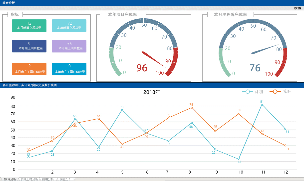 要求從時(shí)間、部門(mén)、人員三個(gè)角度自動(dòng)生成項(xiàng)目的進(jìn)度數(shù)據(jù)分析及圖表分析,直觀的掌握公司項(xiàng)目執(zhí)行狀況,為領(lǐng)導(dǎo)決策提供科學(xué)依據(jù)。