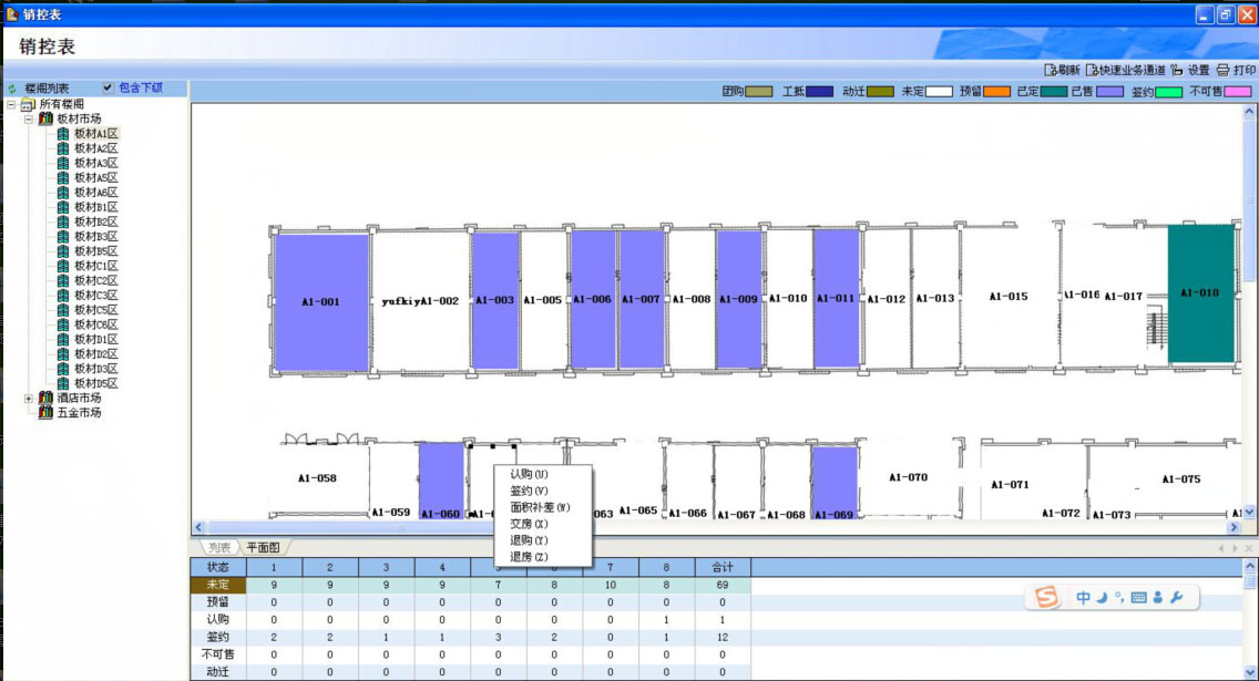 1)為前線銷售人員提供可視化的商鋪展示圖,不但讓客戶直接從銷控表中直接看到意向房間的戶型圖,還能直觀的看到這些商鋪所在的市場位置;另外銷售人員直接在平面圖上就能完成對房間的認購、簽約、交房等業(yè)務操作。軟件在銷售過程中給買賣雙方提供了便捷的操作方式。系統(tǒng)的銷控表還能及時的傳遞到租賃管理、物業(yè)管理模塊中,為售后管理人員提供了及時準備的數(shù)據(jù)便利。