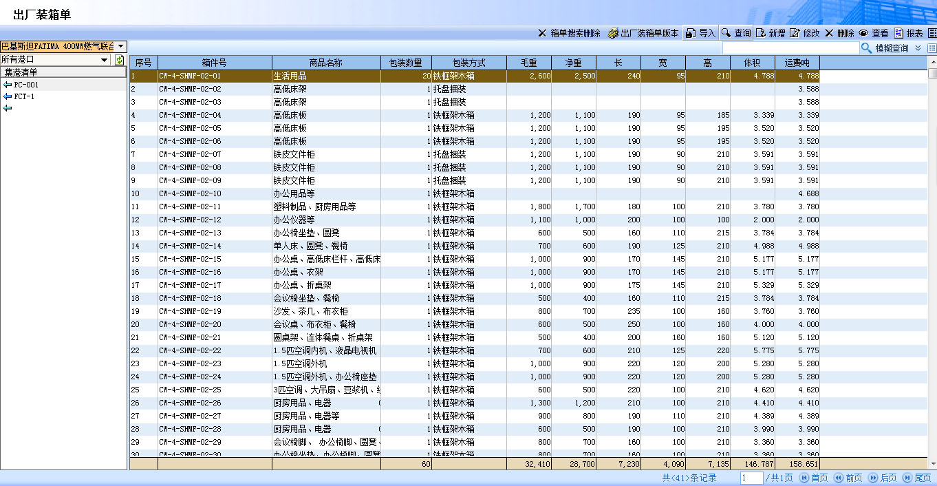 詳細(xì)的裝箱詳單