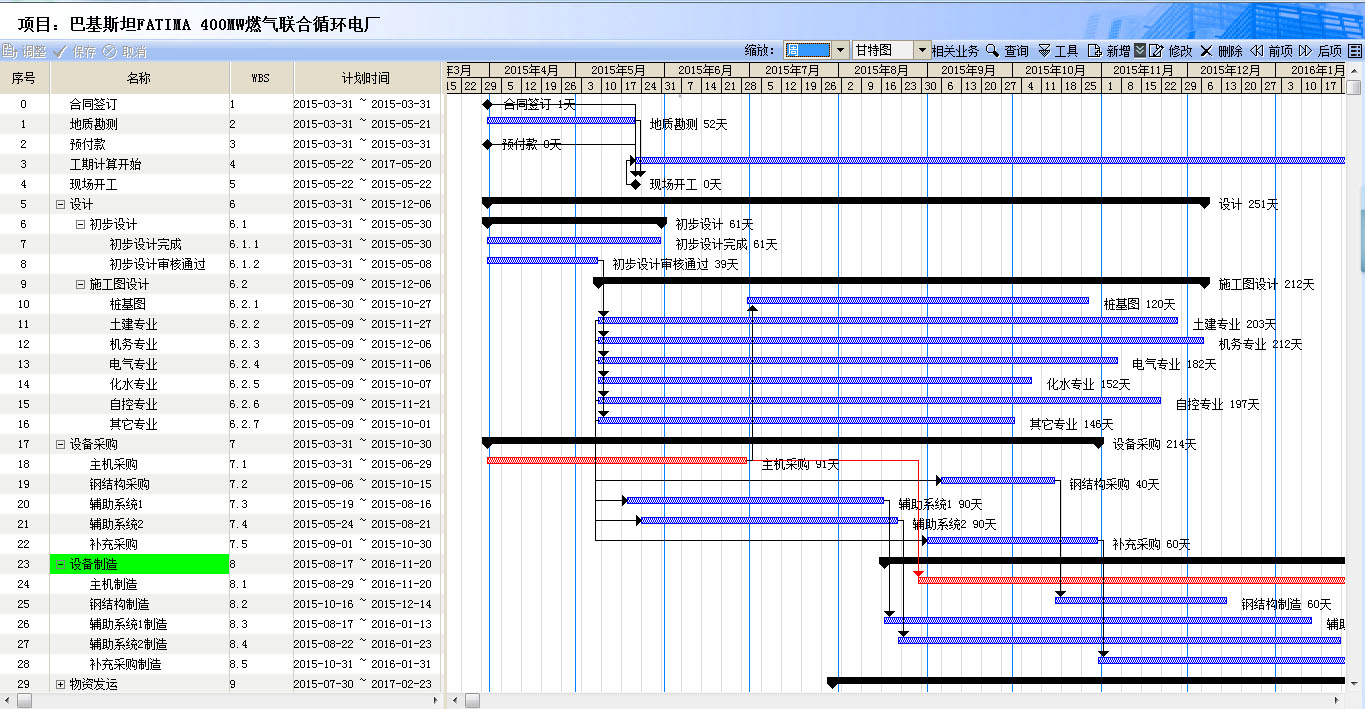 通過(guò)計(jì)劃模塊的應(yīng)用,中機(jī)建立了全過(guò)程的項(xiàng)目進(jìn)度計(jì)劃,涉及從立項(xiàng)、設(shè)計(jì)、采購(gòu)、到工程的全面建設(shè)階段,直到最后的滿負(fù)荷試運(yùn)行。實(shí)現(xiàn)對(duì)國(guó)內(nèi)\國(guó)外眾多項(xiàng)目進(jìn)度全過(guò)程動(dòng)態(tài)的跟蹤、控制、預(yù)警,實(shí)現(xiàn)公司級(jí)的項(xiàng)目規(guī)范。