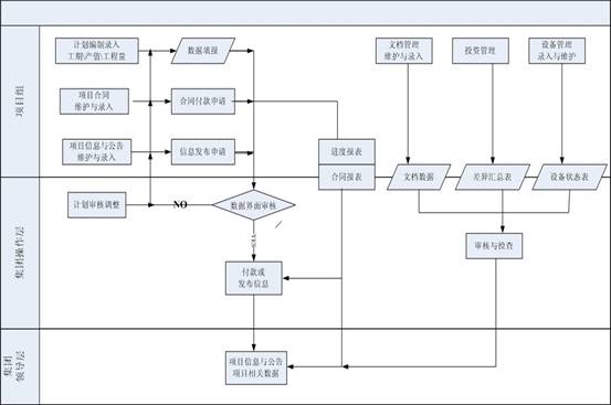為適應(yīng)項(xiàng)目管理的專業(yè)化要求,集團(tuán)設(shè)置了項(xiàng)目部、集團(tuán)職能部門(操作層)、集團(tuán)領(lǐng)導(dǎo)層三層管理模式,實(shí)現(xiàn)項(xiàng)目計(jì)劃、項(xiàng)目合同、項(xiàng)目變更、計(jì)劃變更的多級(jí)審核機(jī)制,項(xiàng)目進(jìn)度的填報(bào)和評(píng)估,目標(biāo)成本的制定與審核確定,資金計(jì)劃與款項(xiàng)支付控制等多位一體的項(xiàng)目管理流程。