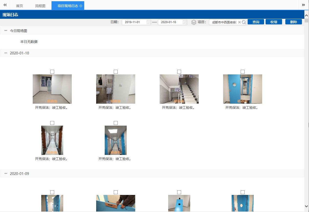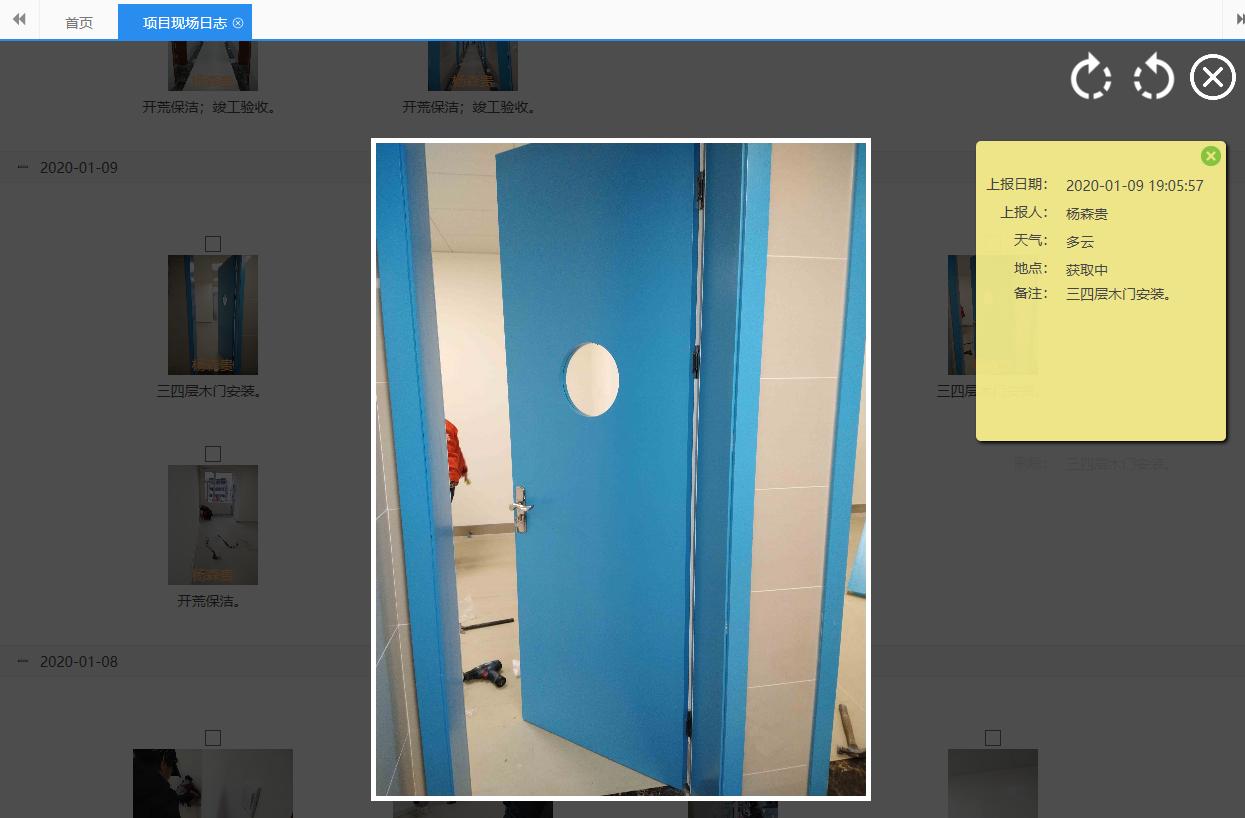 施工單位用戶通過手機(jī)端填報(bào)的現(xiàn)場(chǎng)日志,業(yè)主單位用戶在電腦端查看,掌握工程的每日形象進(jìn)度。