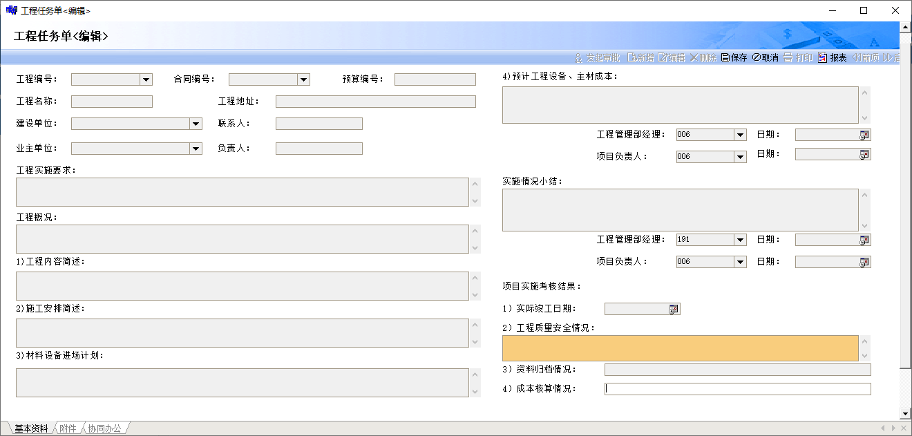 1、通過調(diào)研業(yè)務(wù),針對工程施工類項(xiàng)目,在系統(tǒng)內(nèi)設(shè)置了合同交底書、工程任務(wù)單、工程項(xiàng)目要求評審表、施工方案審核表、施工組織方案、施工策劃表、項(xiàng)目流程進(jìn)度監(jiān)控表等一整套管控節(jié)點(diǎn),明確了部門的責(zé)任與分工,實(shí)現(xiàn)了項(xiàng)目全流程各環(huán)節(jié)的監(jiān)管。